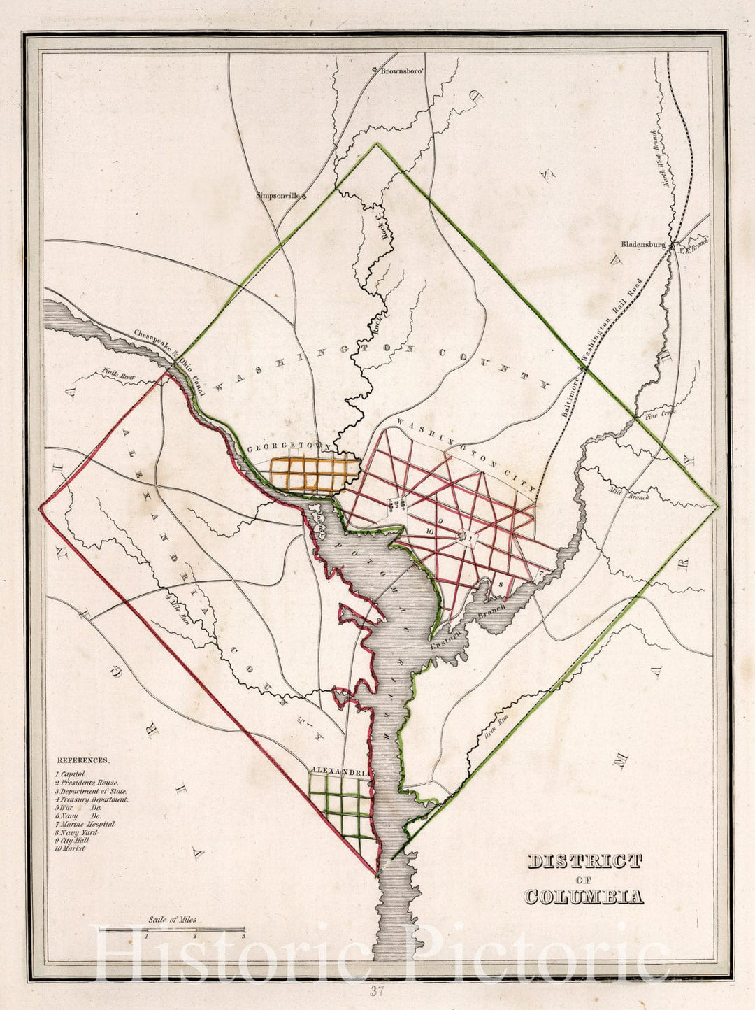 Historic Map : District of Columbia, 1835, Thomas Gamaliel Bradford, Vintage Wall Art