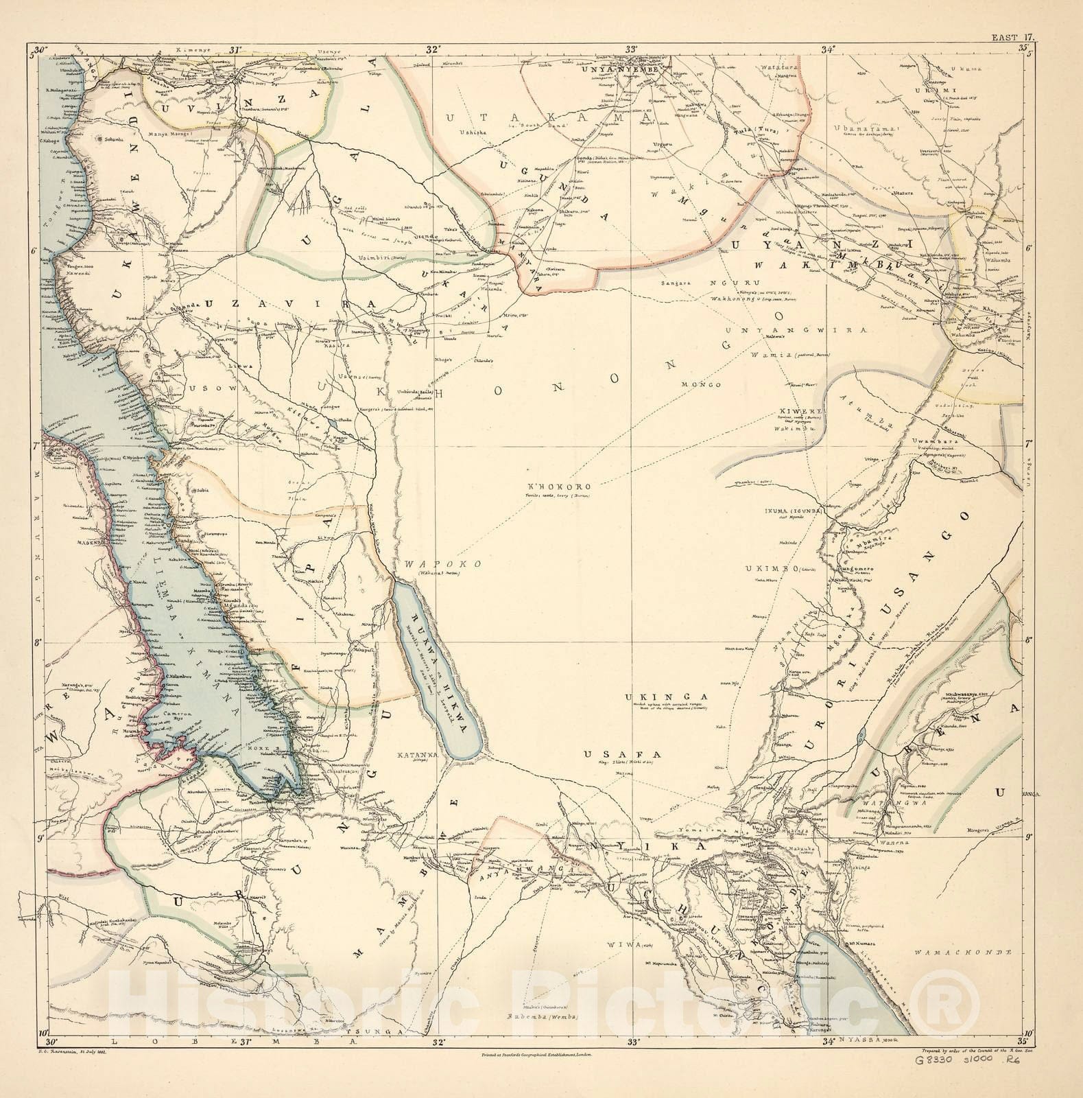 Historic 1881 Map - A map of Eastern Equatorial Africa - East 17