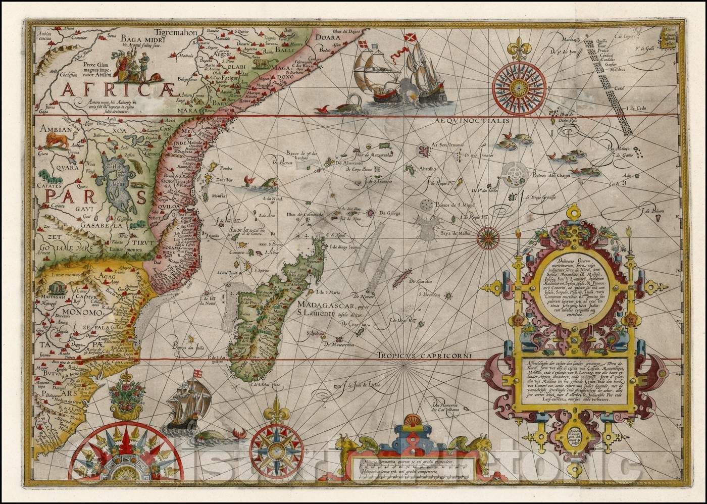 Historic Map - Delineatio Orarum Maritimarum, Terrae vulgo Indigetatae Terra do/Linschoten's Map of Eastern Africa, Van Langren brothers, 1596 - Vintage Wall Art