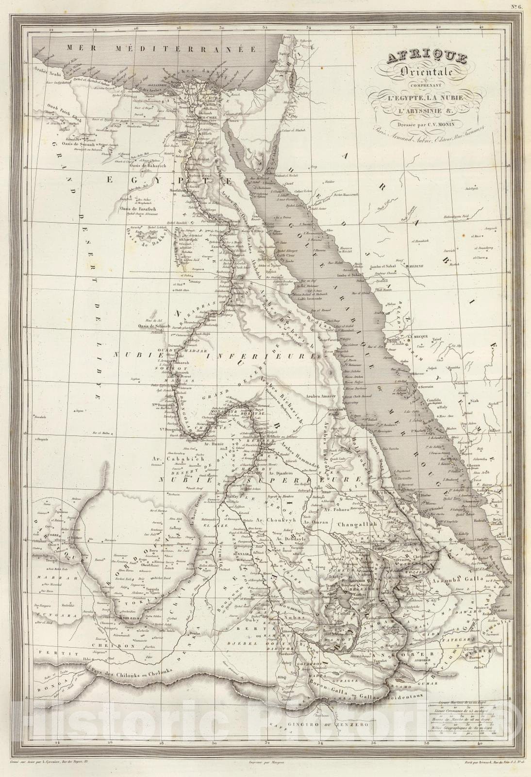 Historic Map : Egypt; Sudan, East Africa 1837 Afrique Orientale. , Vintage Wall Art