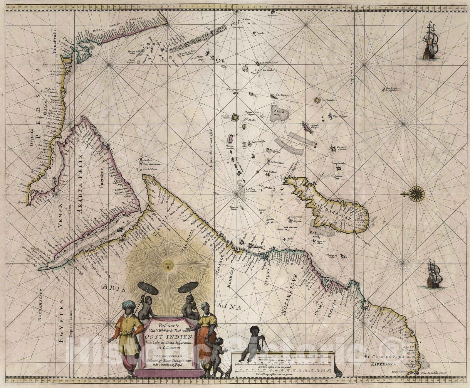 Madagascar, East Coast of Africa, Indian Ocean 1667 Pascaerte Van't Westelycke Deel van West Indien. , Vintage Wall Art