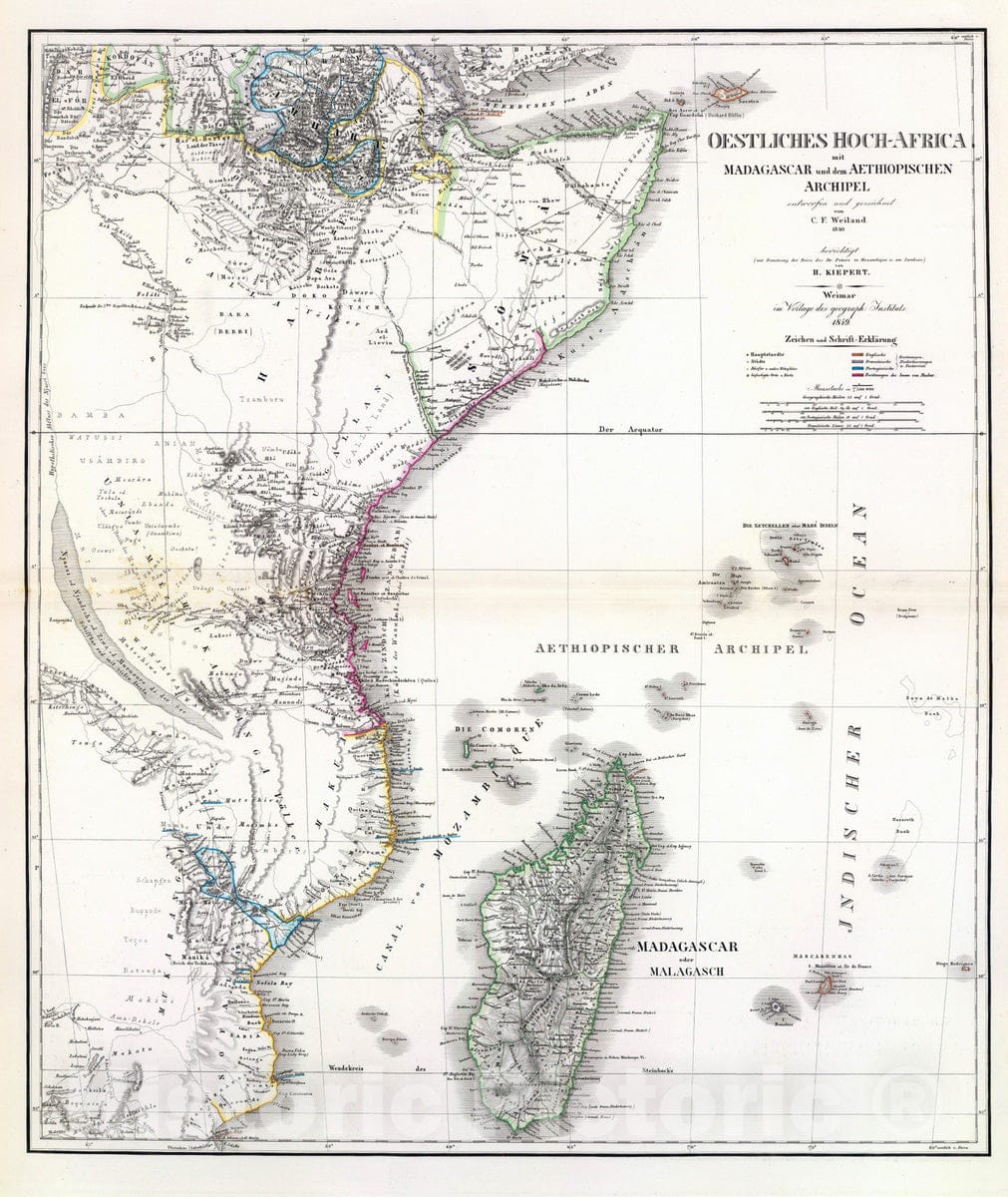 Historic Map : Madagascar; Tanzania, Africa, Eastern 1849 Oest. Hoch-Africa. , Vintage Wall Art
