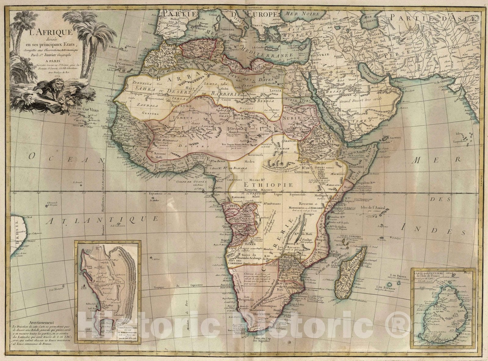 Historic Map : Middle East, Africa 1769 L'Afrique divisee en ses principaux etats , Vintage Wall Art