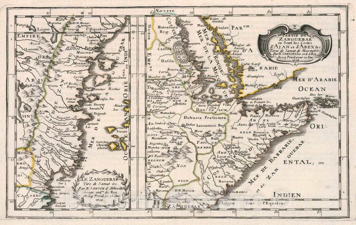 Historic Wall Map : Africa, East 1656 Partie Du Zanguebar ou Sont les Costes d'Ajan et d'Abex &c. , Vintage Wall Art