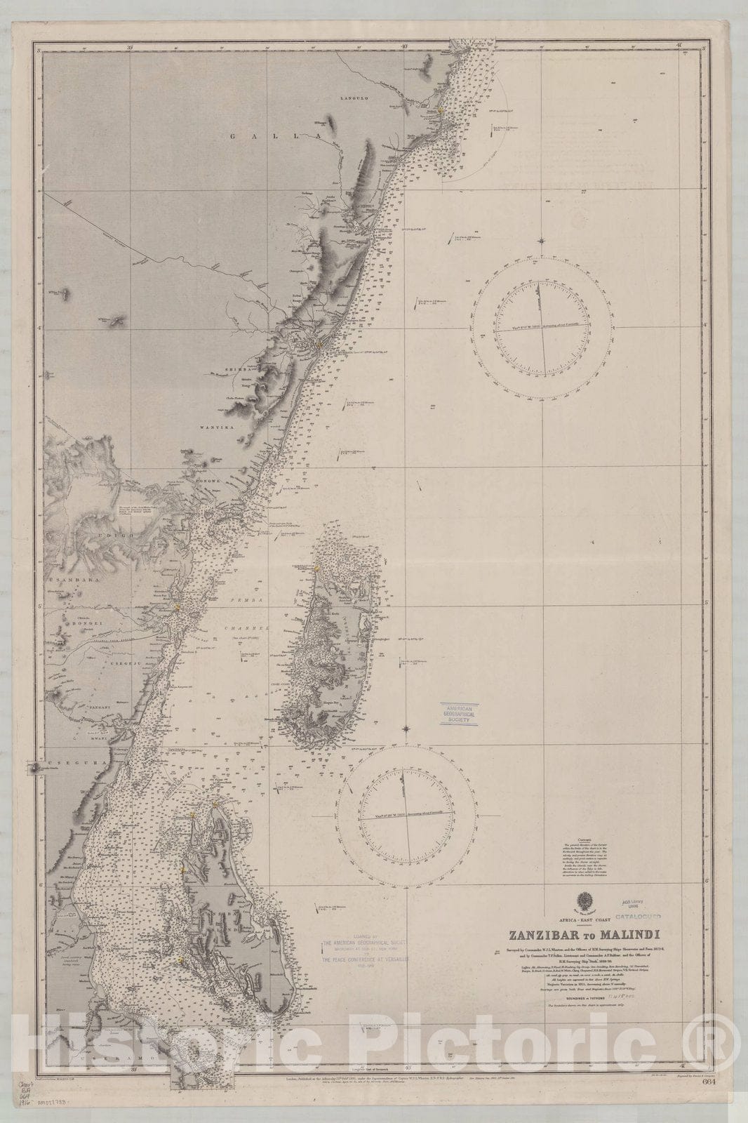 Africa, east coast, Zanzibar to Malindi / published at the Admiralty 25th Feby. 1891 ; Engraved by Davies & Company