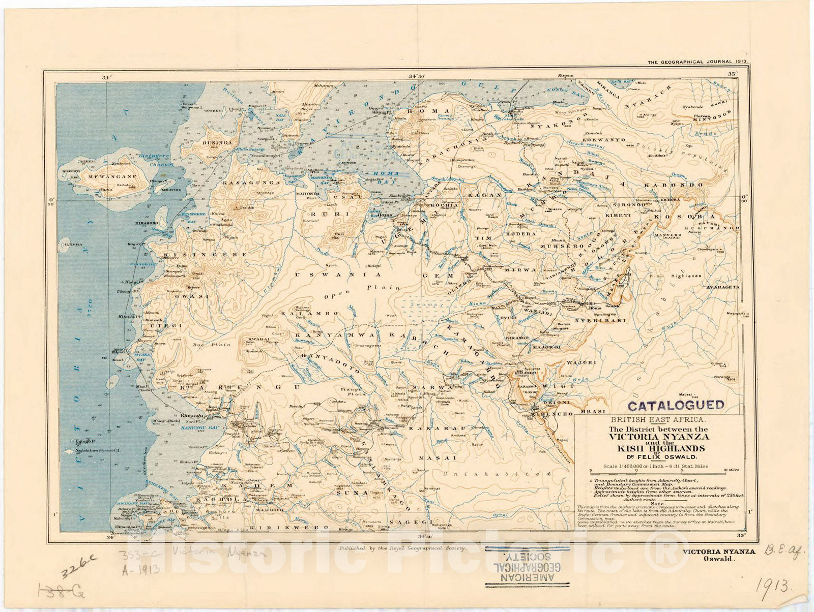 British East Africa, the district between the Vitoria Nyanza and the Kisii Highlands / by Dr. Felix Oswald. Published by the Royal Geographical Society