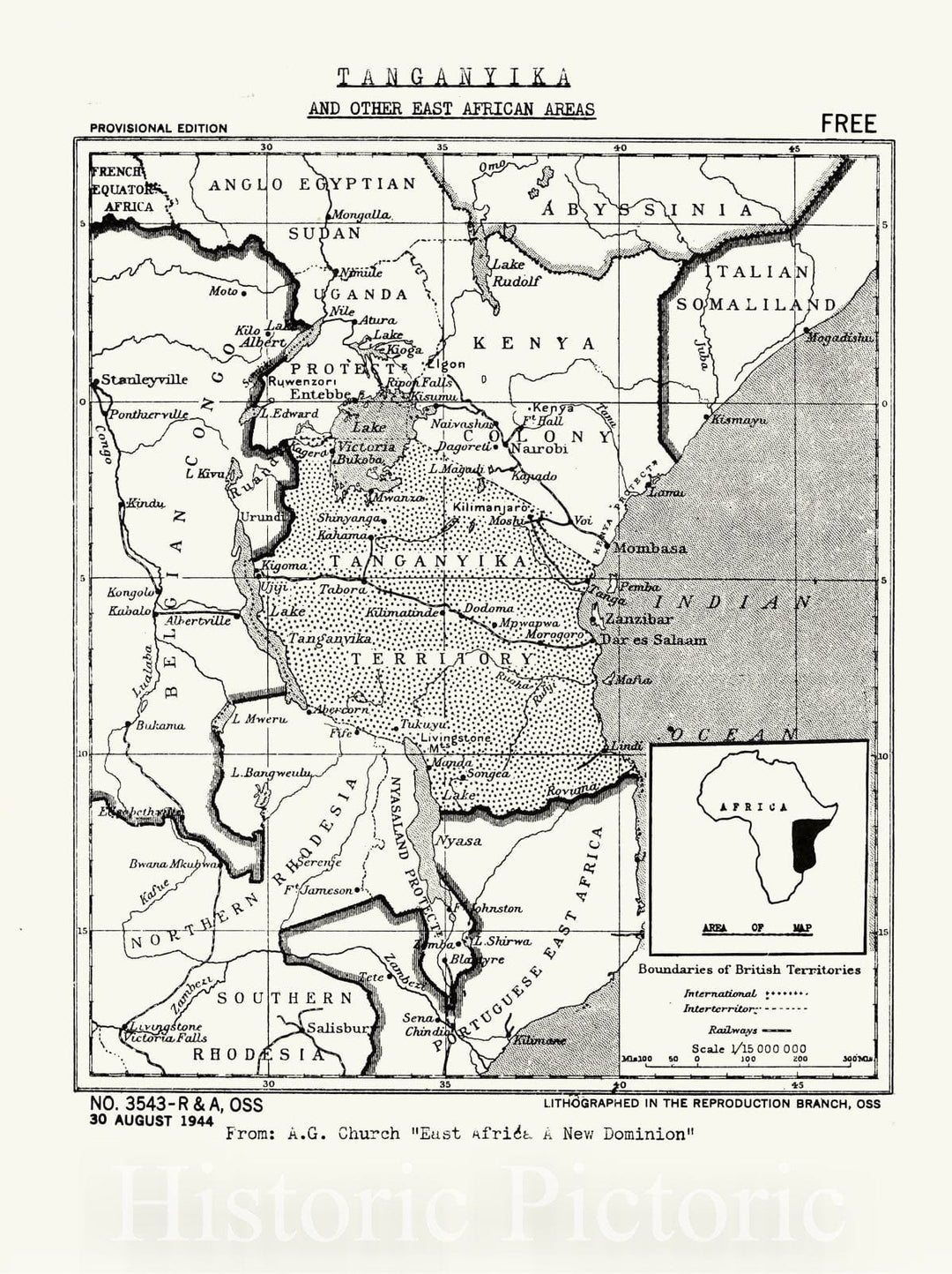 Map : Tanzania 1944, Tanganyika and other East African areas , Antique Vintage Reproduction
