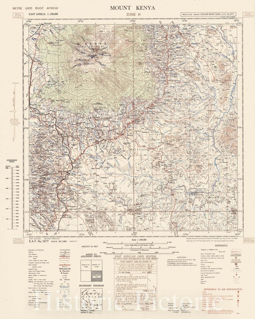 Historic 1940 Map - East Africa 1:250,000 - Mount Kenya (Zone H)