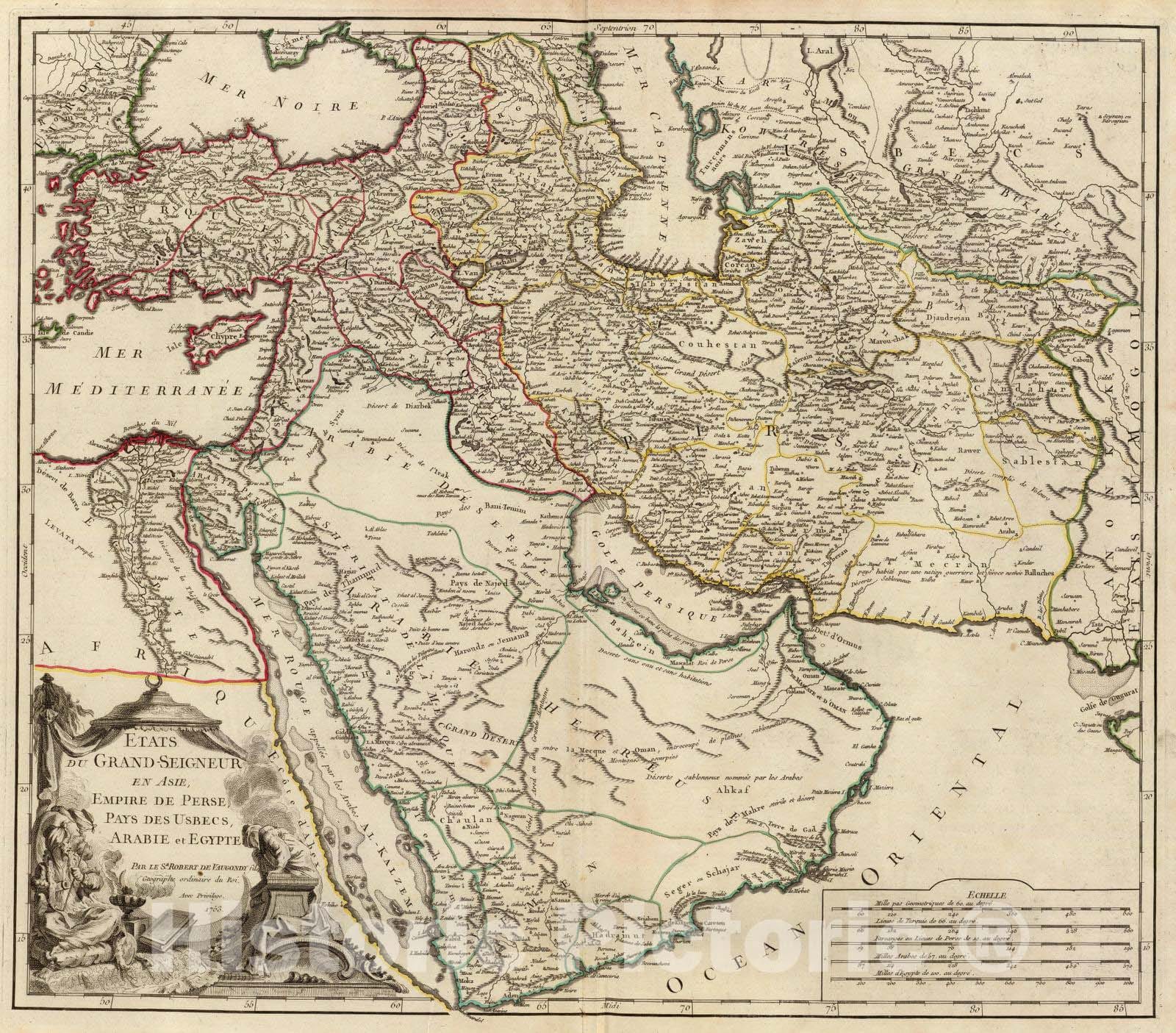 Historic Map : Afghanistan; Iran; Pakistan; Turkey, Middle East, Asia 1753 Etats du Grand-Seigneur en Asie, Perse, Pays des Usbecs, Arabie, Egypte., Vintage Wall Art