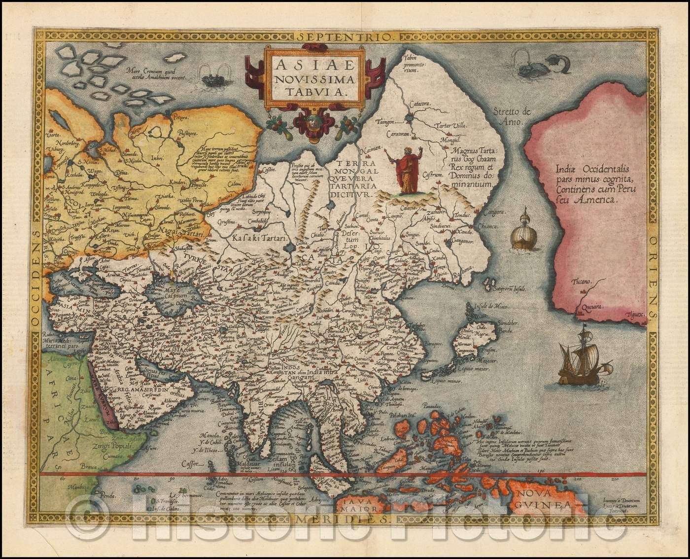 Asiae Novissima Tabula / Map of Asia, Straits of Anian, Northeast Passage, include Persia and Arabia, 1578, Gerard de Jode