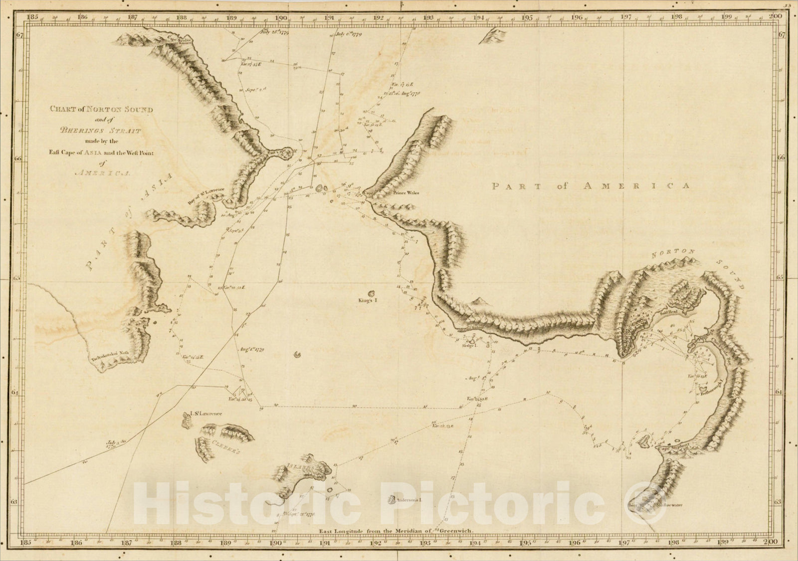 Historic Map : Chart of Norton Sound and of Bherings Strait made by the East Cape of Asia and the West Point of America, 1784, James Cook, v2, Vintage Wall Art