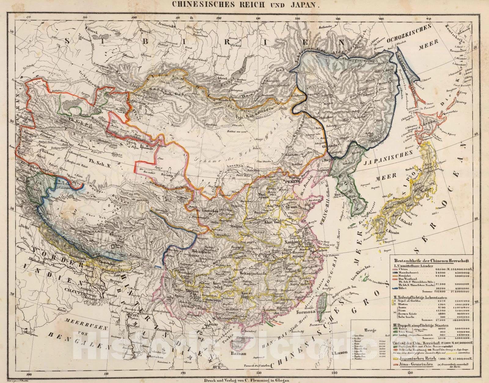 Historic Map : China; Japan, East Asia 1855 Chinesisches Reich, Japan. , Vintage Wall Art