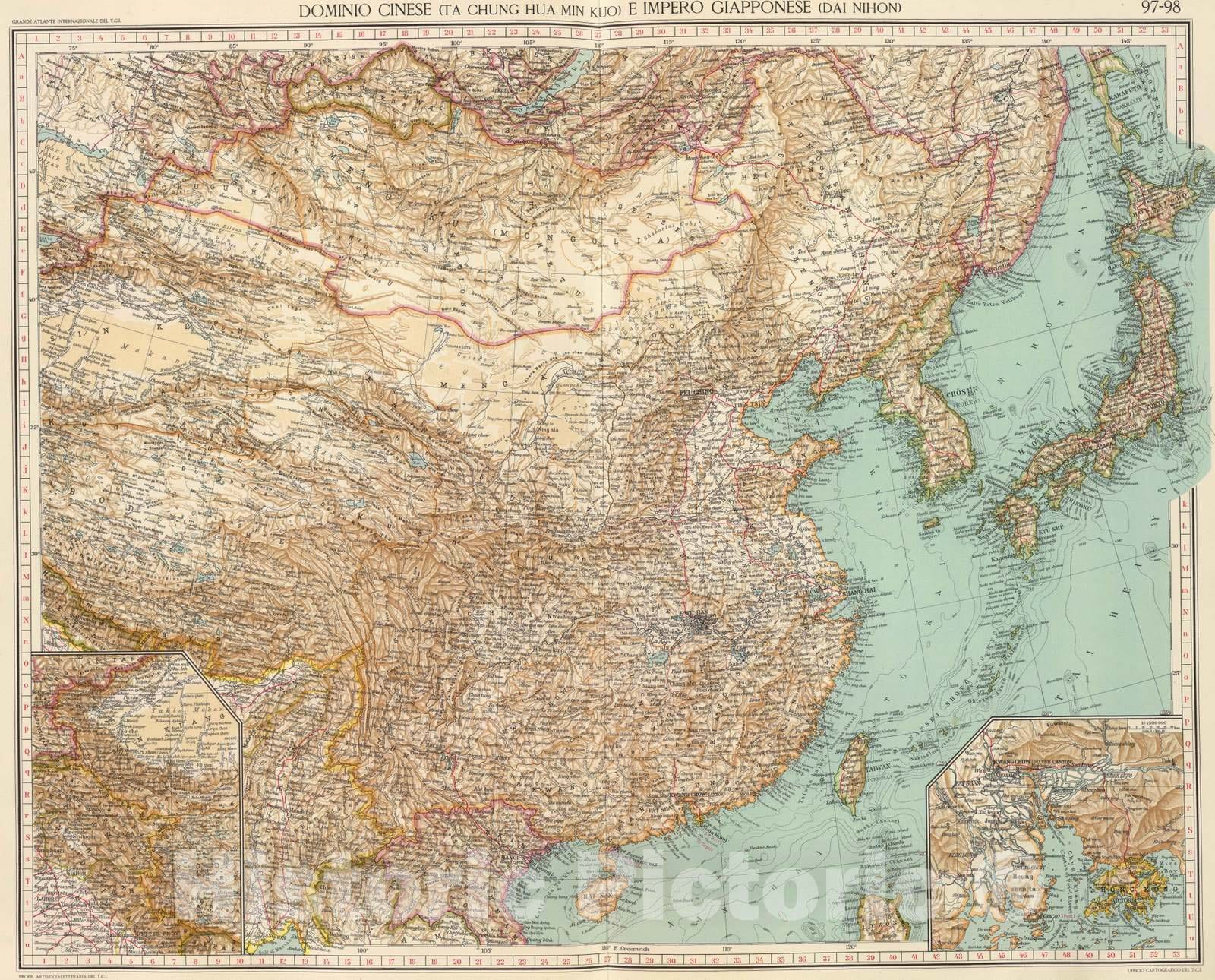 Historic Map : China; Japan, East Asia 1929 97-98. Dominio Cinese, Impero Giapponese. , Vintage Wall Art