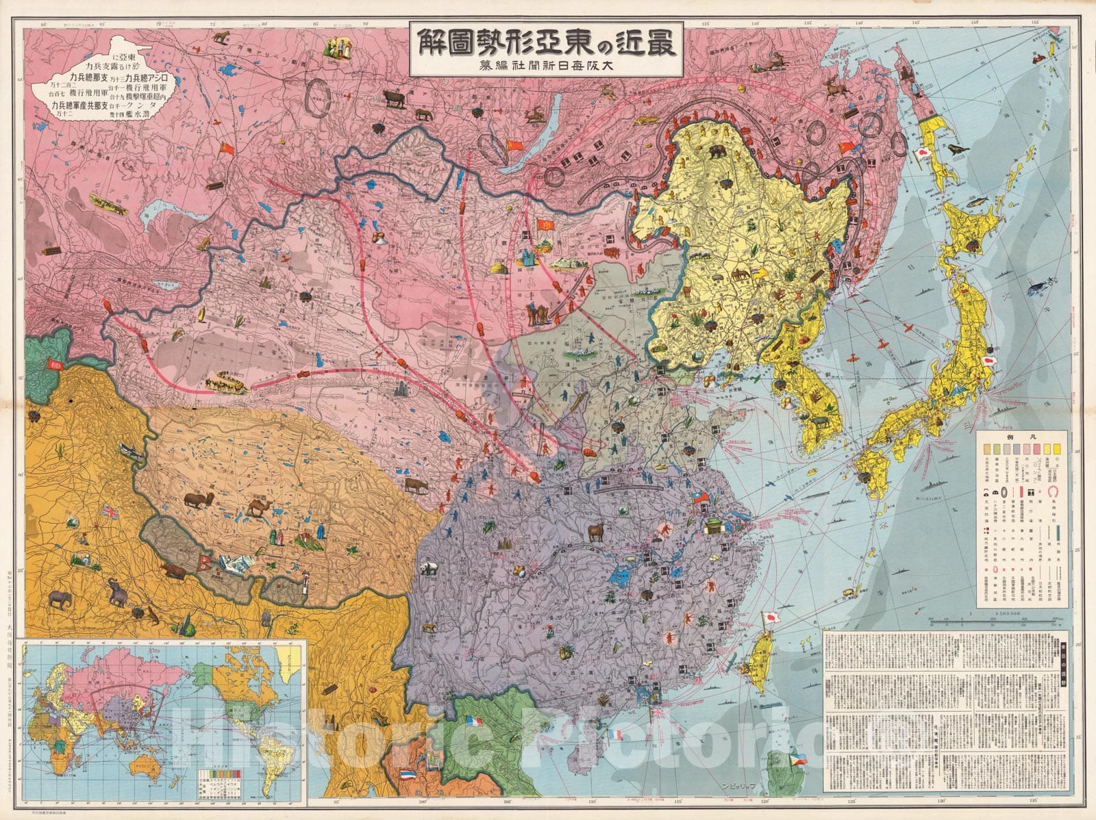 • .Historic Map : East Asia Saikin no Toa Keisei Zukai. Osaka Mainichi Shinbunsha 1937 , Vintage Wall Art