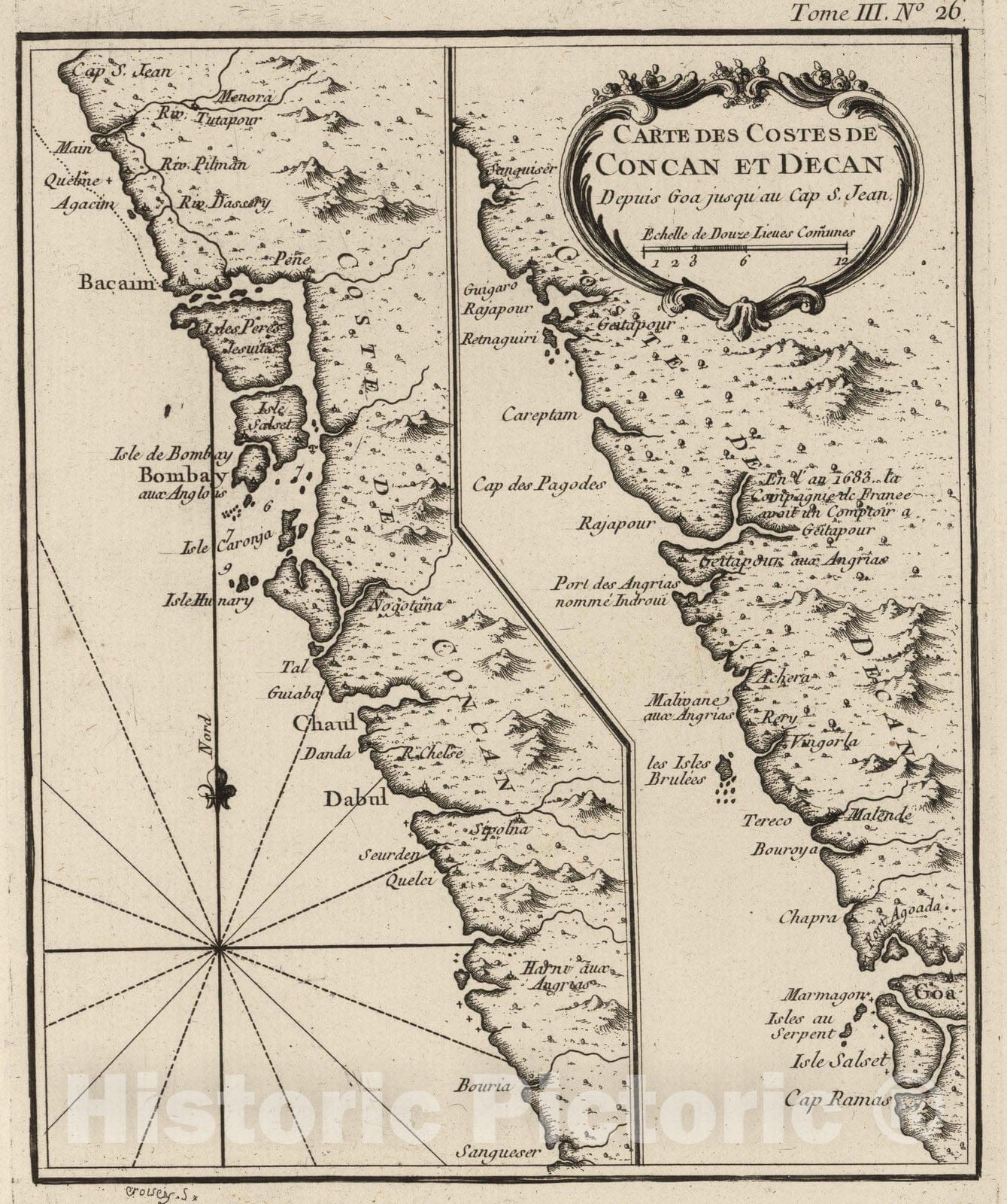 • Historic Map : India, South East Asia 1764 Carte Des Costes De Concan Et Decan : Depuis Goa jusqu'au Cap S. Jean , Vintage Wall Art