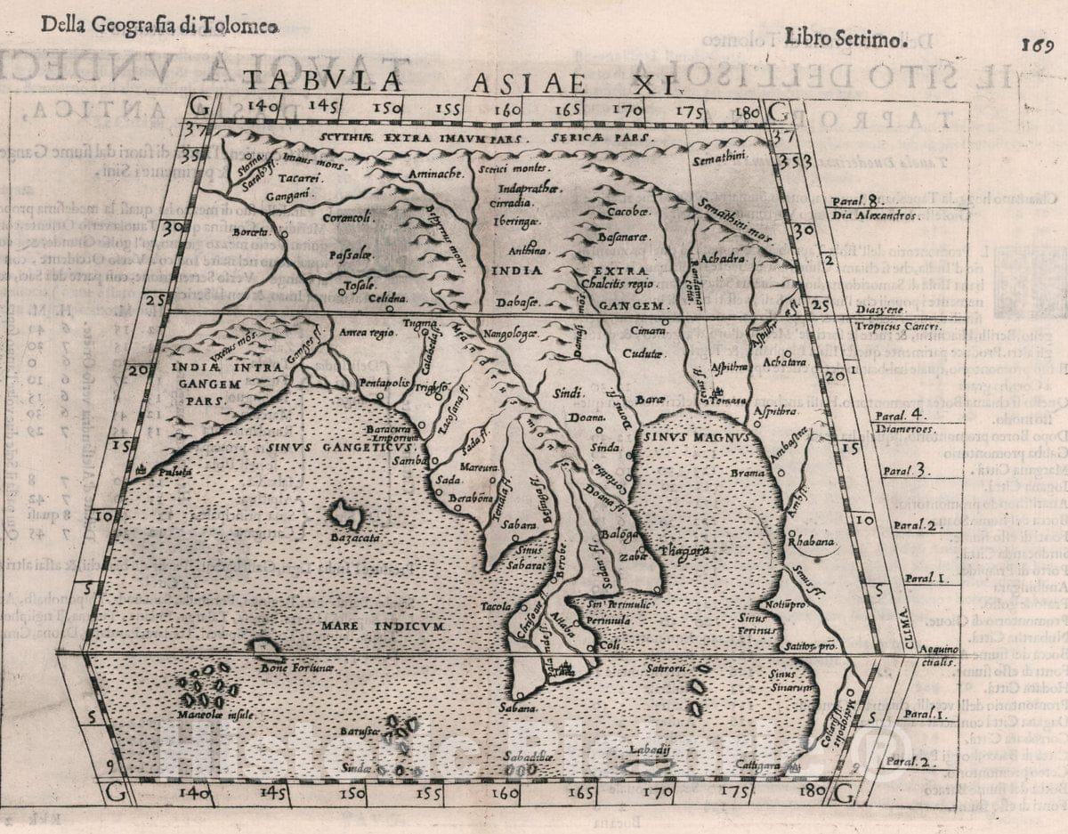 Historic Map : India, South East Asia Tabvla Asiae XI. Della Geografia di Tolomeo. Libro Settimo, 1599 Atlas , Vintage Wall Art