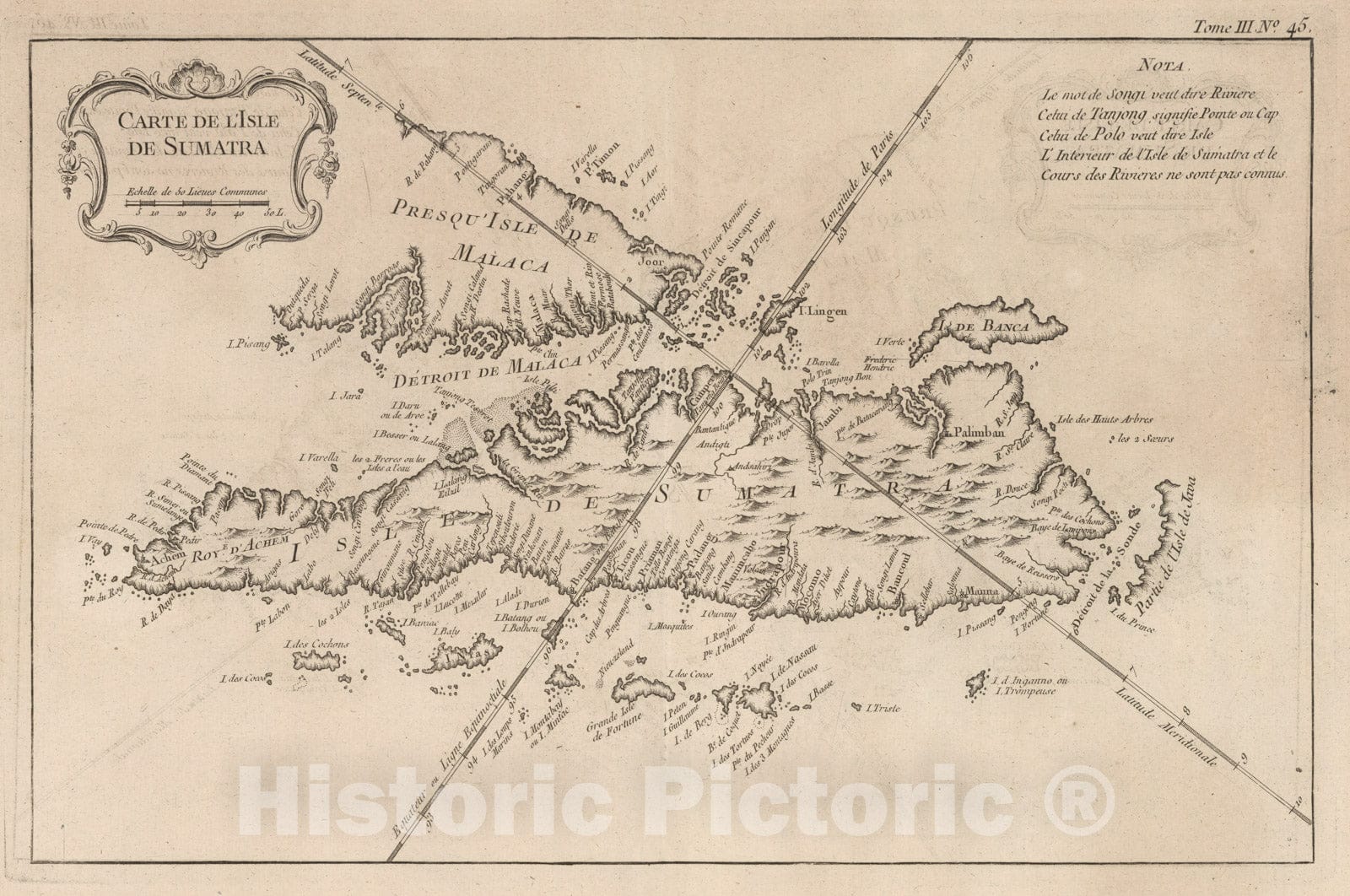 • .Historic Map : Indonesia, South East Asia 1764 Carte de l'Isle de Sumatra , Vintage Wall Art