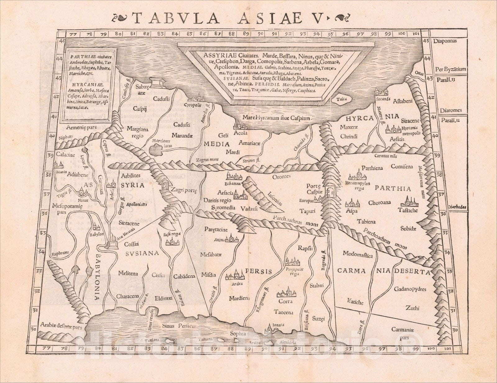 Historic Map : [Iran, Eastern Iraq] Tabula Asiae V, 1542, Sebastian M?nster, Vintage Wall Art