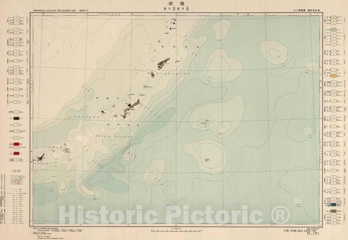 Historic Map : Japan, Eastern Asia Geological Atlas of Eastern Asia. Sheet 16. Ryukyu, 1929 Geologic Atlas , Vintage Wall Art