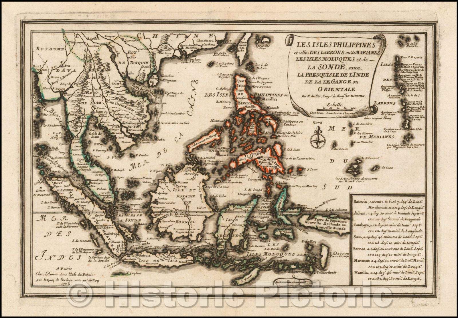 Historic Map - Les Isles Philippines et celles Des Larrons ou de Marianes Les Isles Moluquest et de La Sonde/Map of the Philippines and Southeast Asia, 1702 - Vintage Wall Art