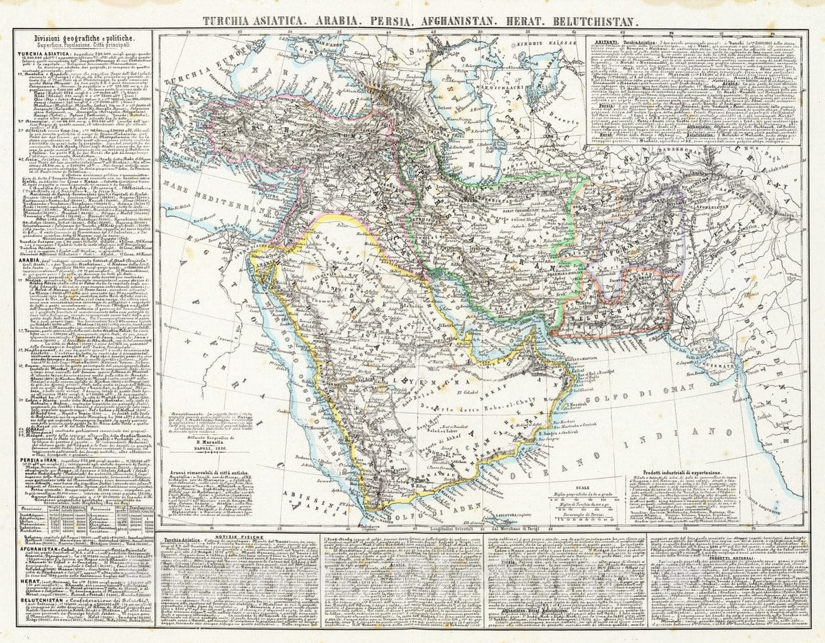 Historic Map : Middle East, Asia 1856 Turchia Asiatica, Arabia, Persia, Afghanistan, Herat, Belutchistan. , Vintage Wall Art