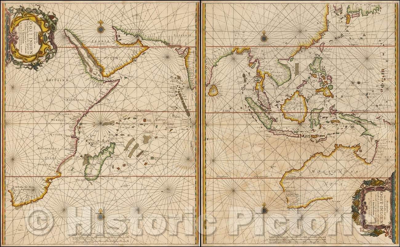 Historic Map - Pascaerte Van't Oostelyckste deel van Oost-Indien met alle de Eylanden :: Sea Chart of Australia, Southeast Asia and Indian Ocean, 1670 - Vintage Wall Art