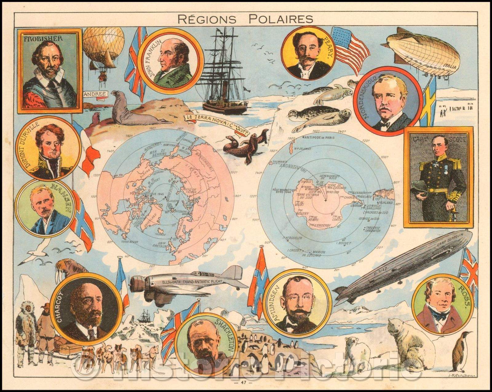 Historic Map - Regions Polaires/Map of Southeast Asia and the Philippines, 1950, Joseph Porphyre Pinchon - Vintage Wall Art