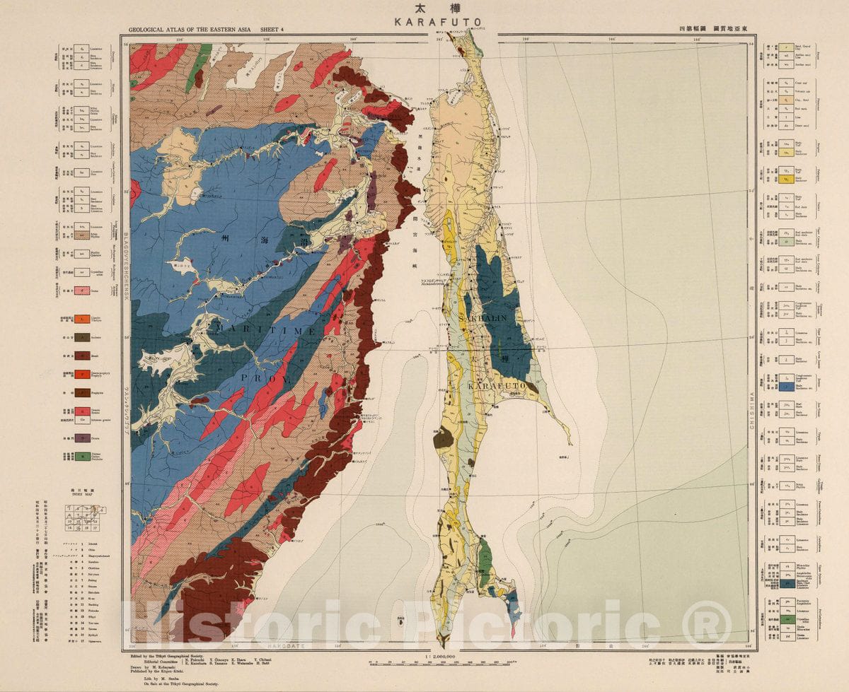 • .Historic Map : Russia, Eastern Asia Geological Atlas of Eastern Asia. Sheet 4. Karafuto, 1929 Geologic Atlas , Vintage Wall Art