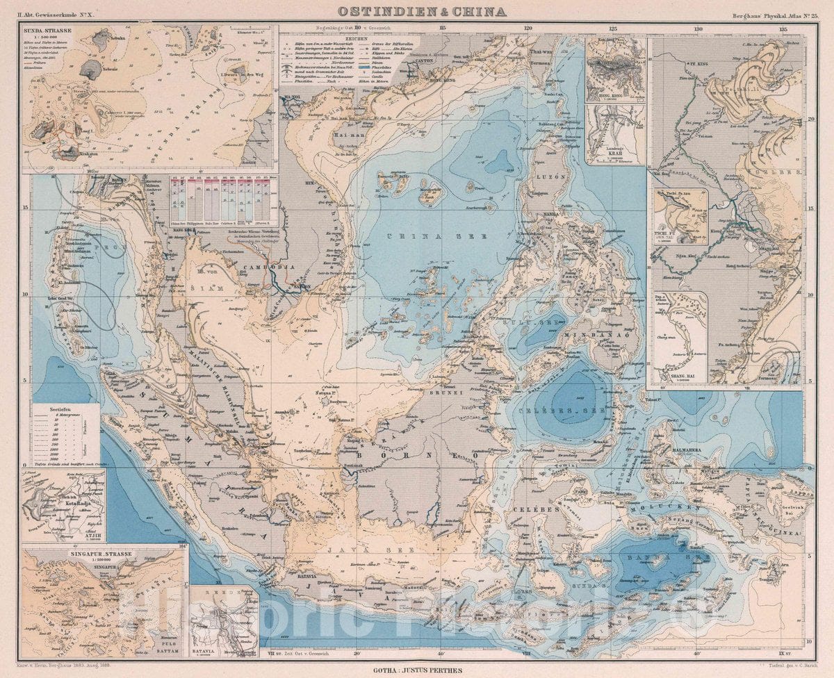 South East Asia 1883, Ausg. 1888. Tiefenl gez. v. C. Barich. Gotha: Justus Perthes, 1888 Atlas ,