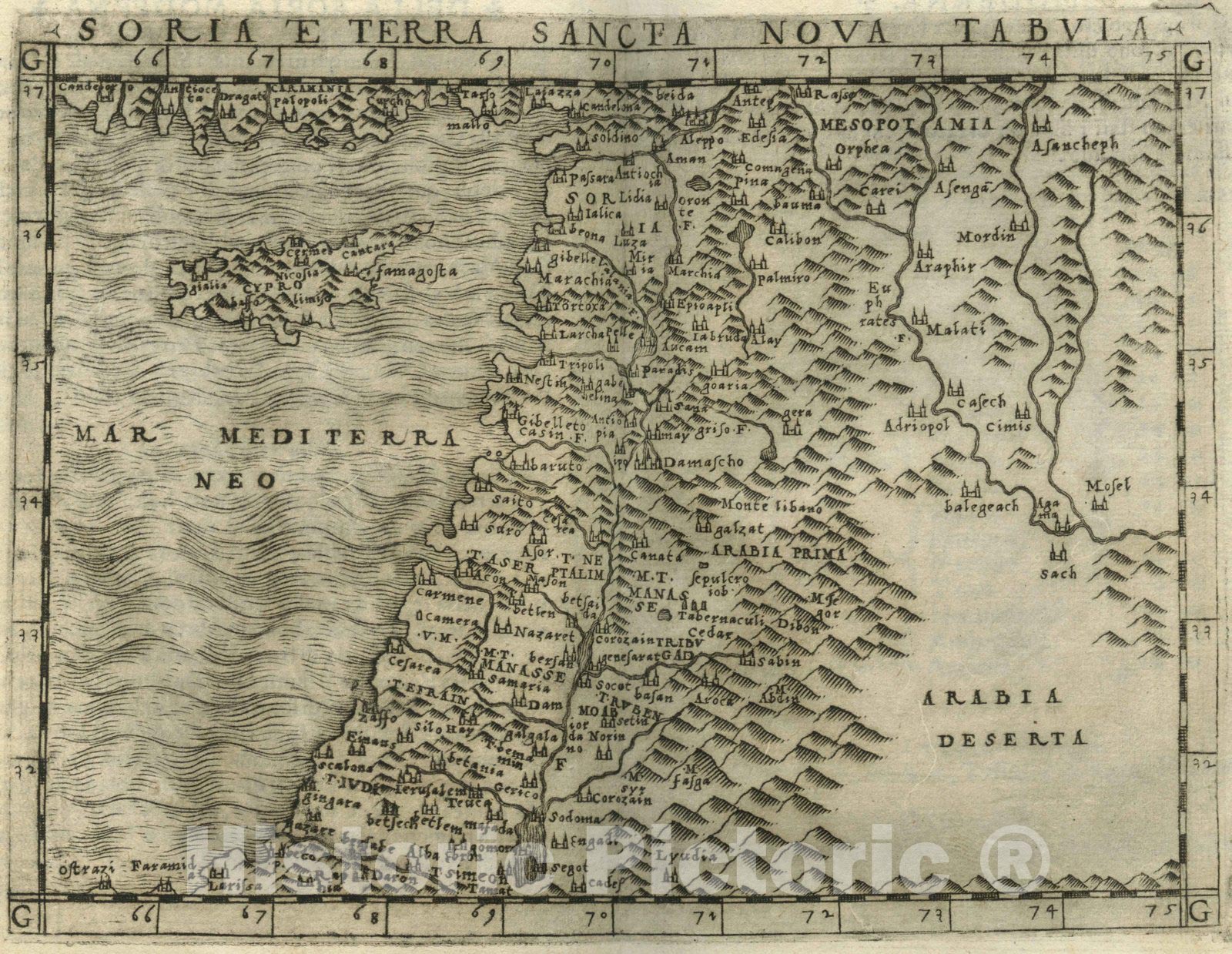 • .Historic Map : Syria, Middle East, AsiaSoria e Terra Sancta nova tabula 1548 , Vintage Wall Art