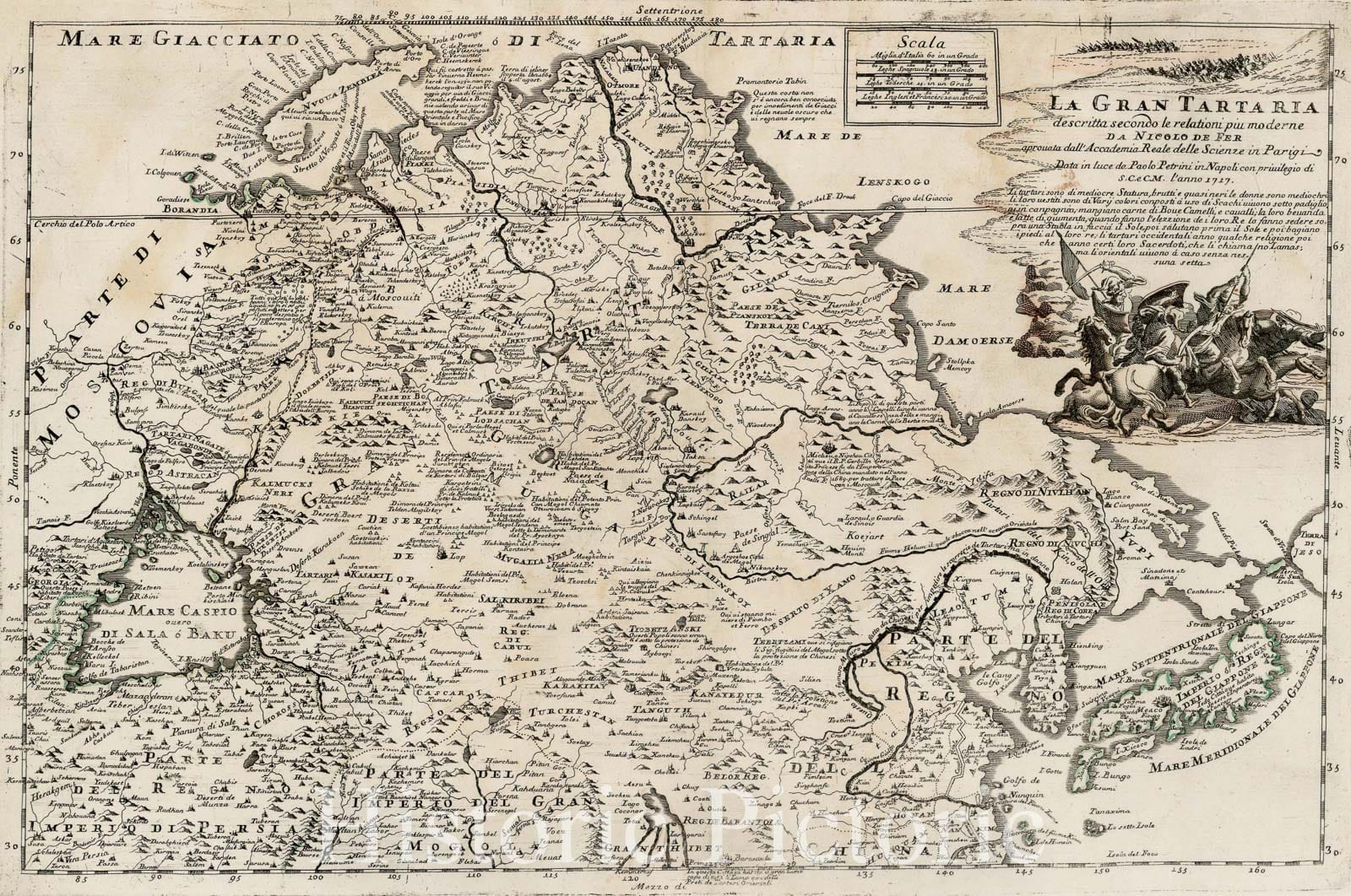 • Historic Map - Tab. XIII. Asiae Scythiam Extra Imaum ac Sericam :: Mercator's Ptolemaic map of Central Asia east of the Caspian Sea, 1698 - Vintage Wall Art