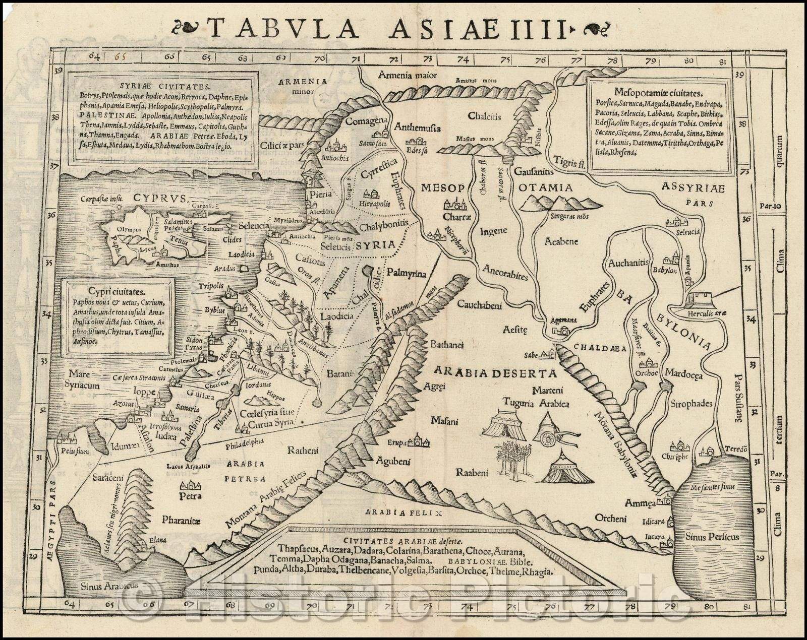 • .Historic Map - Tabula Asiae IIII Cyprus, Holy Land, Syria & Middle East, 1542, Sebastian M?nster - Vintage Wall Art