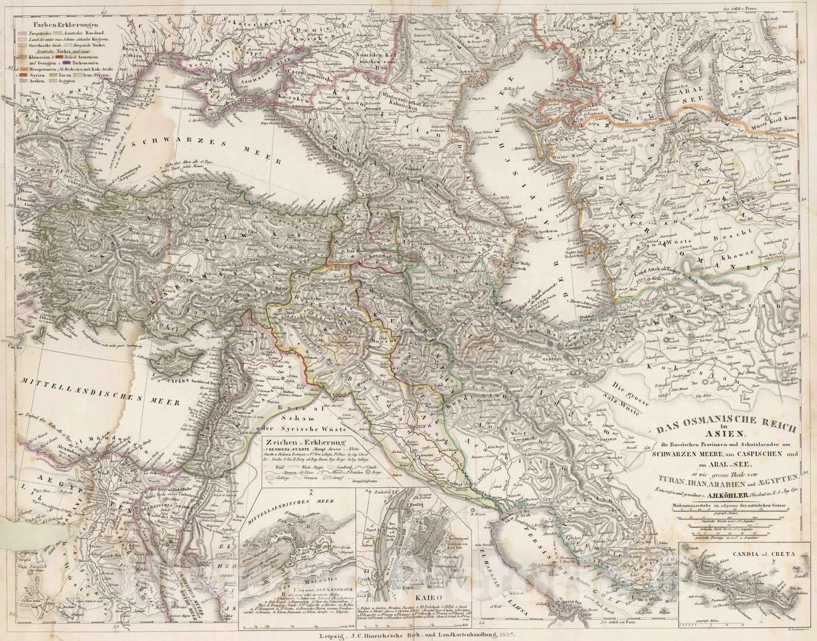 Historic Map : Turkey, Middle East, Asia 1847 Das Osmanische Reich in Asien , Vintage Wall Art
