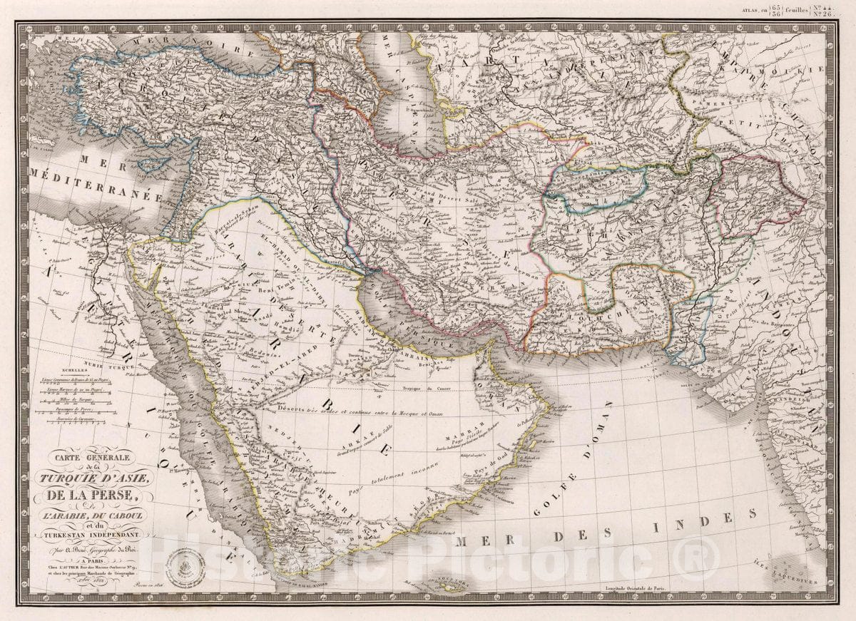 Turkey, Middle East, Asia Carte generale de la Turquie d'Asie, 1822 Atlas , Vintage Wall Art