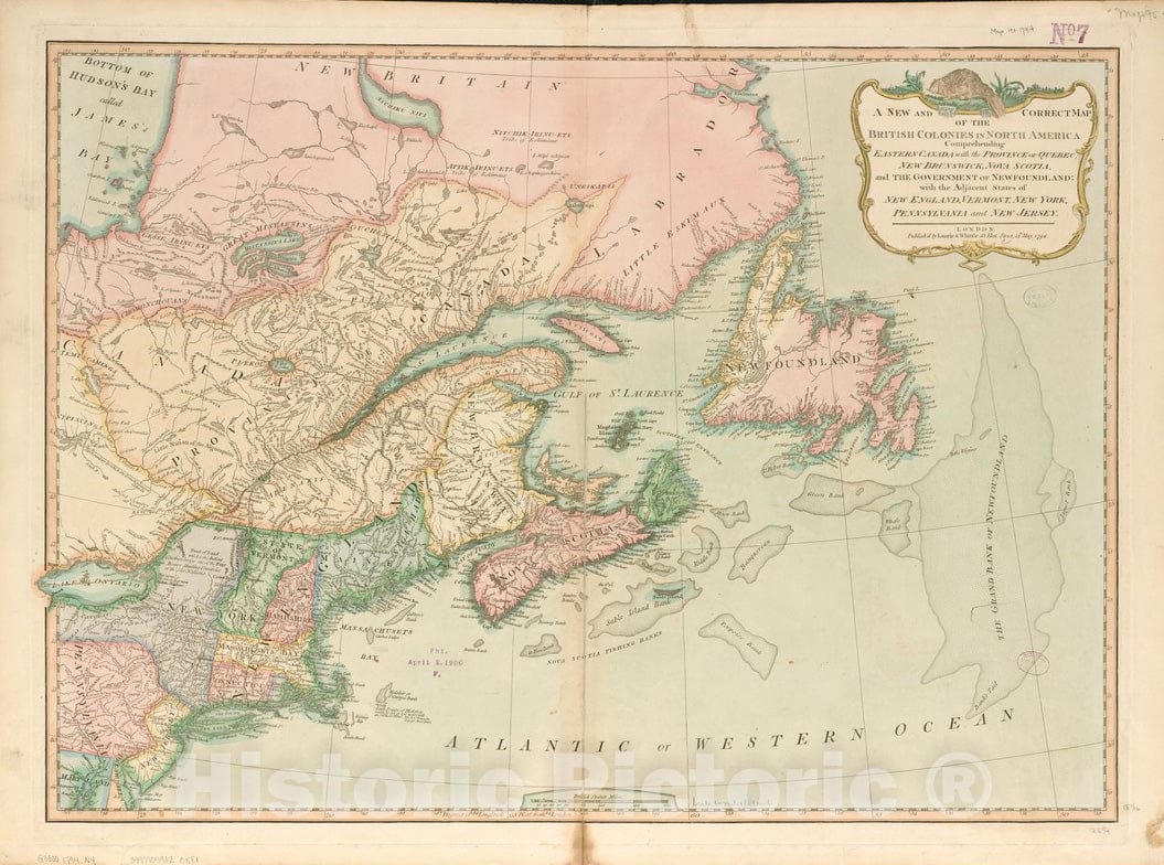 • .Historical Map, 1794 A New and correct map of the British colonies in North America comprehending eastern Canada with the province of Quebec, New Brunswick, Vintage Wall Art