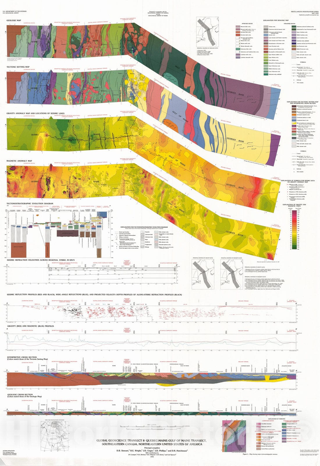 Map : Global geoscience transect 8: Quebec-Maine-Gulf of Maine transect, southeastern Canada, northeastern United States of America, 1993 Cartography Wall Art :