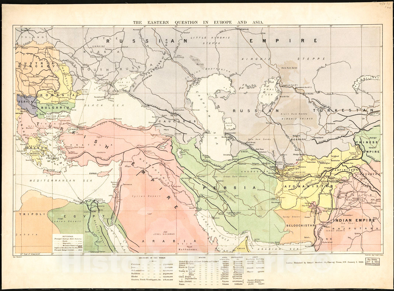 Historic 1886 Map - The Eastern question in Europe and Asia