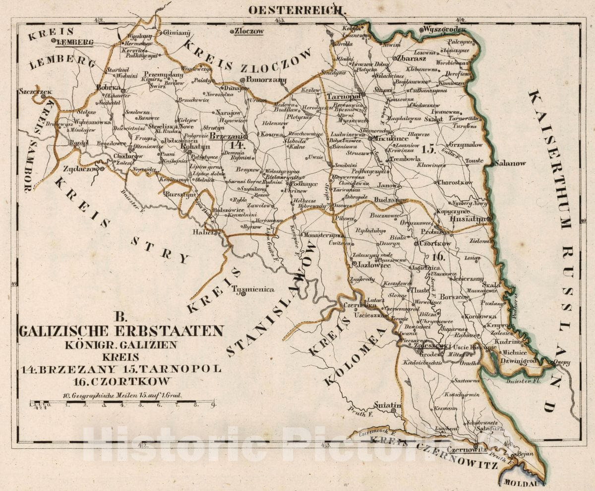 Historic Map : Austria, Eastern Europe V.3:11-15:XI:1.Oesterreich. B. Galizische Erbestaaten Koenigr: Galizien Kreis, 1828 Atlas v4 , Vintage Wall Art