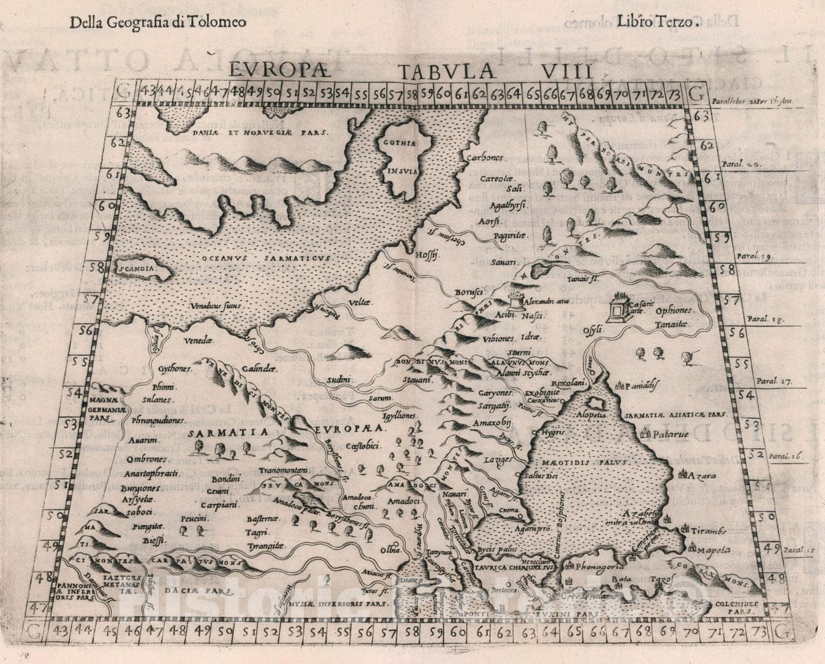 Historic Map : Europe, Eastern Tabula Europae VIII. Della Geografia di Tolomeo. Libro Terzo, 1599 Atlas , Vintage Wall Art