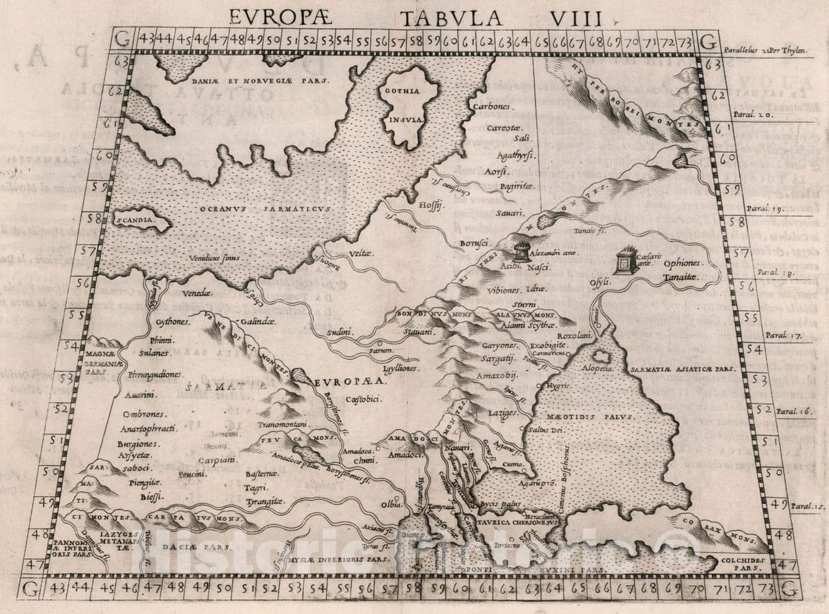 Historic Map : Europe, Eastern Tabvla Evropae VIII. D'Evropa, Ottava tavola Antica. La geografia di Claudio Tolomeo Alessandrino, 1561 Atlas , Vintage Wall Art