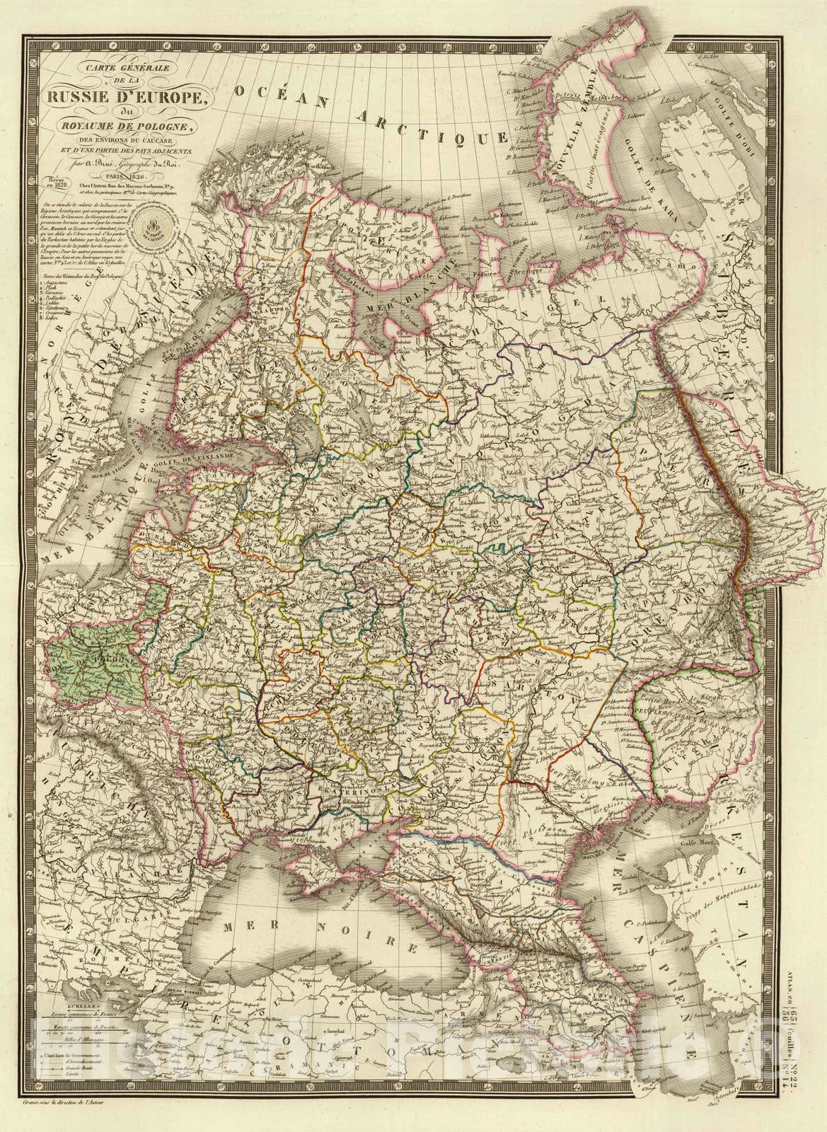 Historic Map : Poland; Russia, Europe, Eastern 1828 Russie d'Europe, Pologne. , Vintage Wall Art