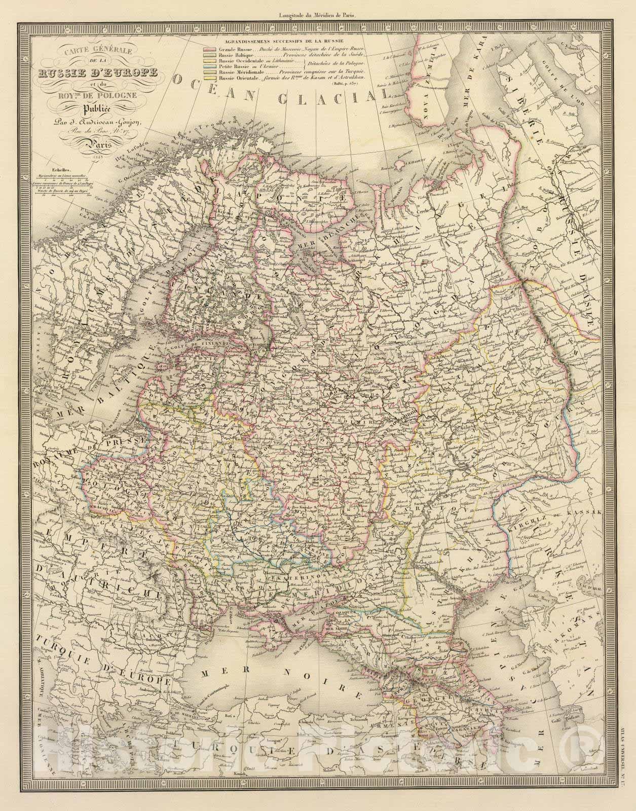 Historic Map : Poland; Russia, Europe, Eastern 1845 Russie, Pologne. , Vintage Wall Art