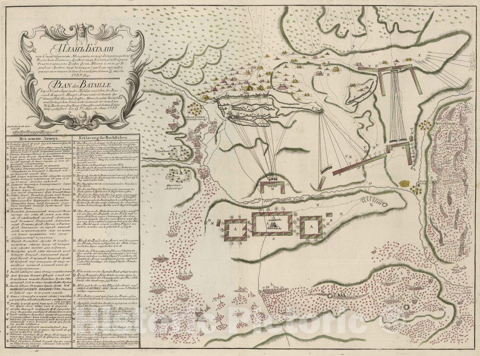 Historic Map : Russia; Moldova, Eastern Europe 1739 Plan Batalii pri Stavuchanakh v Moldavii , Vintage Wall Art
