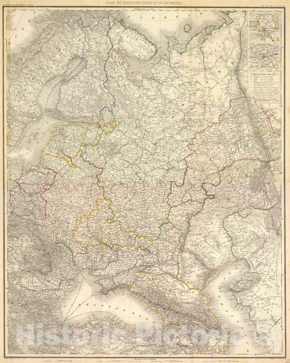 Historic Map : Russia; Ukraine, Europe, Eastern Composite: Das Russische Reich in Europa, 1865 Atlas , Vintage Wall Art