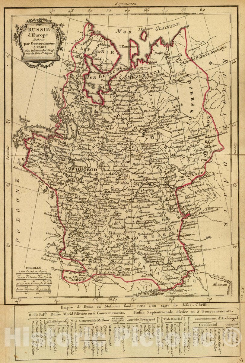 Historic Map : Russia; Ukraine, Europe, Eastern Russie d'Europe divisee par gouvernemens. 1800, Vintage Wall Art