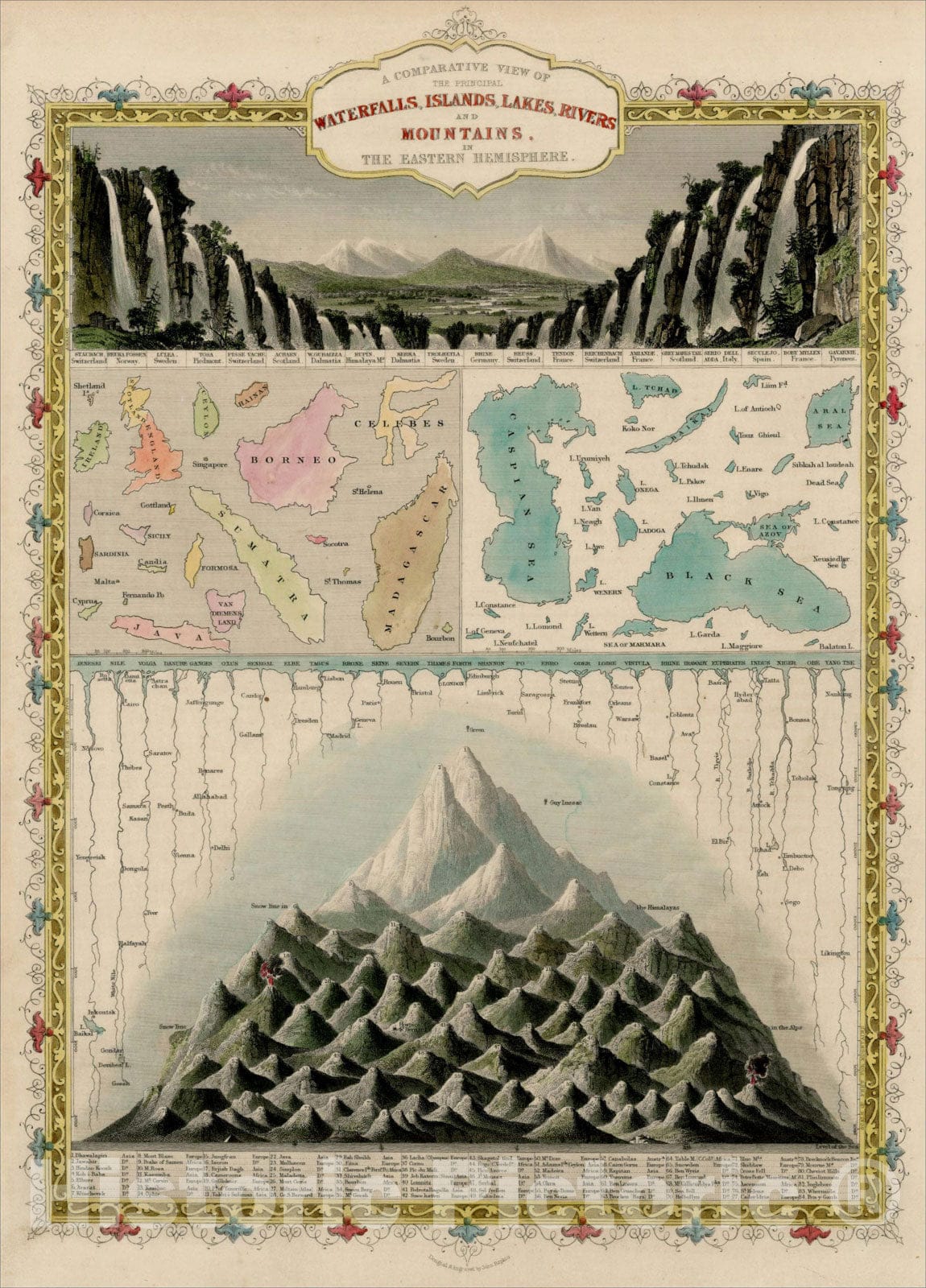 Historic Map : A Comparative View of the Principal Waterfalls, Islands, Lakes, Rivers, and Mountains in the Eastern Hemisphere, 1851, John Tallis, v4, Vintage Wall Art
