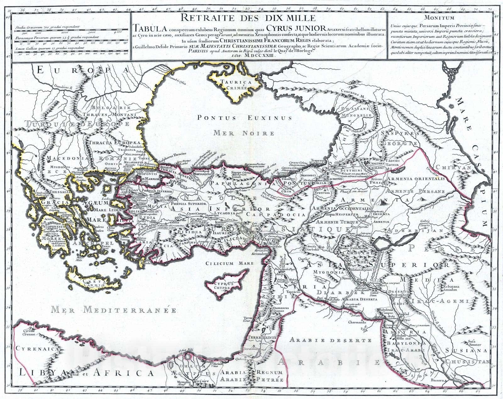 Historic Map : Iran; Turkey, , Eastern Hemisphere 1723 Retraite des Dix Mille Tabula. , Vintage Wall Art