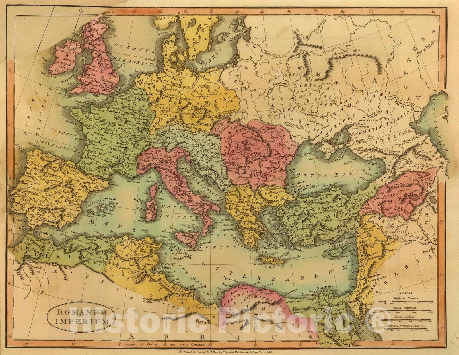• .Historic Map : Rome, Eastern Hemisphere 1811 Romanum Imperium. , Vintage Wall Art