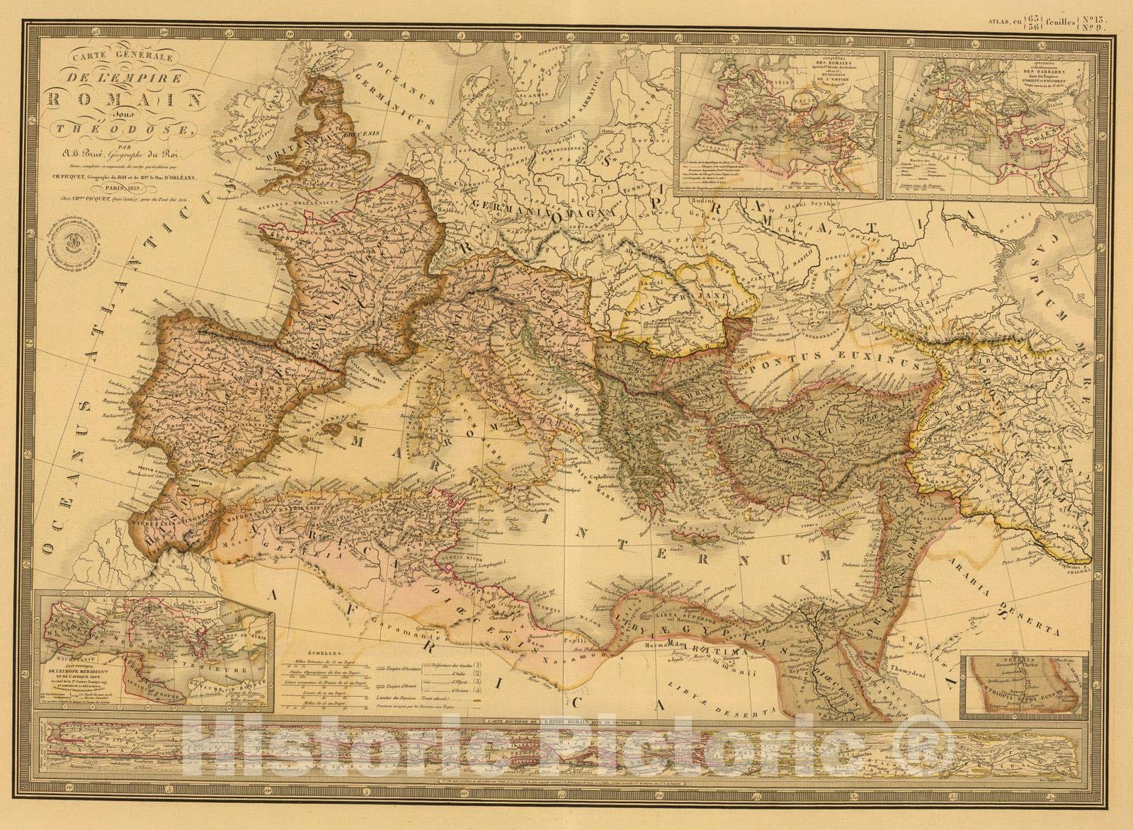 Historic Map : Rome, Eastern Hemisphere 1839 Empire Romain sous Theodose. , Vintage Wall Art