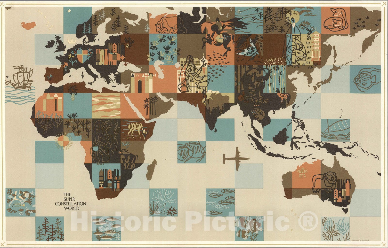 Historic Map : The Super Constellation World. (Eastern Hemisphere). 1955 - Vintage Wall Art
